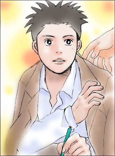 「あんまムリするなよ」と自分のジャケットを肩にかけてやってるところです。